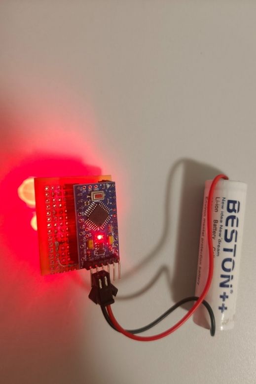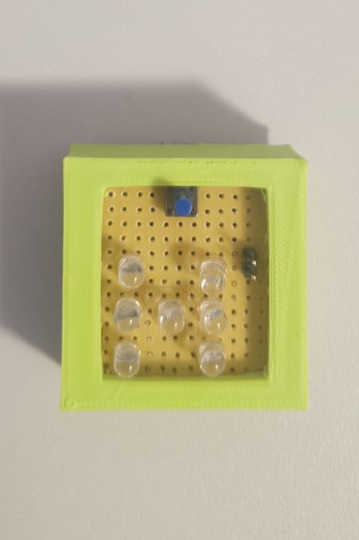 A simple dice made using seven LEDs, a button, and an Arduino pro mini. The dice rolls when the user pushes the button. It has two operating frequencies, 1 Hz and 100 Hz, which can be selected using a jumper. The circuit was an exam question in Layouts subject in my university, but it had diferent constraints. I created a simple replica using Arduino.